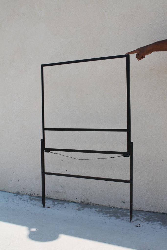 - Material: 3/4″ angle iron legs and 3/4″ angle iron cross bars with shaped bottom legs